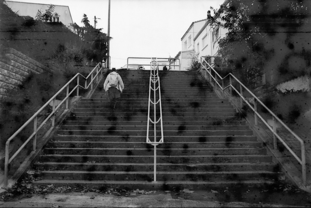 Attention, ce film est abîmé. Il aurait pris l’humidité pendant son stockage. Mais comme cela est clairement spécifié sur la page ci-dessus du site Labeauratoire, on l’achète en connaissance de cause. Les tâches d’humidité recouvrent l’ensemble de l’émulsion. Les zones claires sur le négatif (zones sombres en réalité) sont donc tâchées, alors que les zones sombres sur le négatif (zones claires en réalité) apparaissent propres car l’halogénure d’argent révélé uniformément noir recouvre l’émulsion et est donc opaque à la lumière.